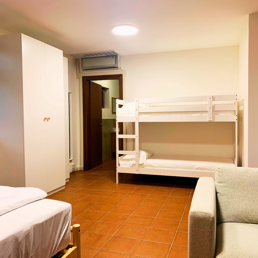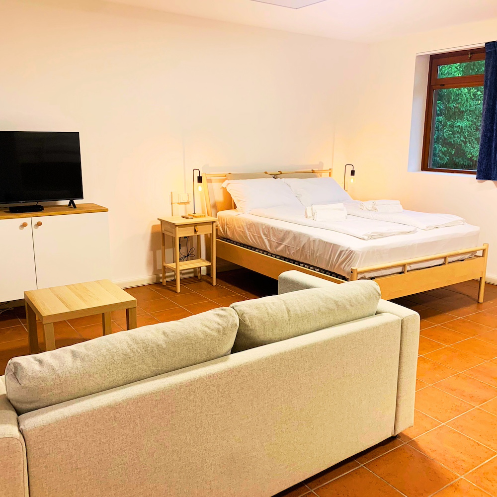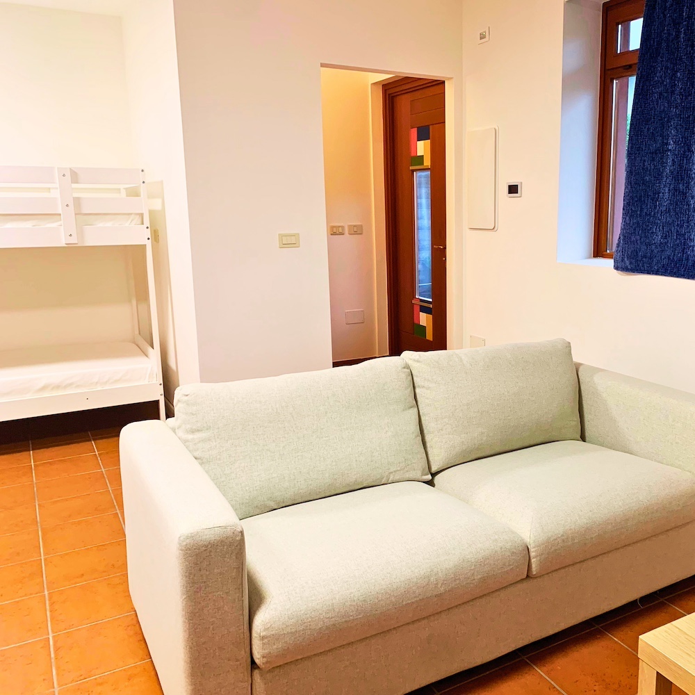 Capienza fino a 6 persone (4 adulti e 2 bambini), la camera è dotata di una zona living con LedTV dotata di canali Sky Gold, divano (trasformabile in letto), un bagno privato doccia, biancheria inclusa e una cucina separata completamente attrezzata. All'esterno è presente un giardino privato.